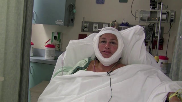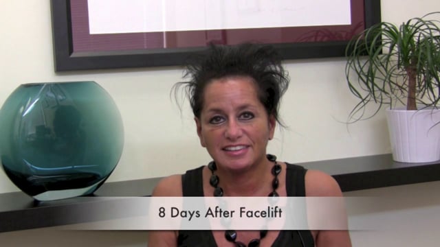 Video of a patient 2 days after facelift surgery by Dr. Steiger. She is seen here without her bandages on and discusses her experience on this day. This is part of her video journey that highlights her facelift healing process.